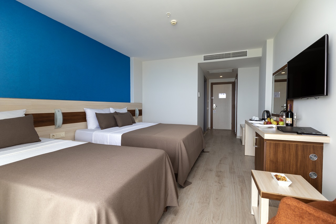 Odada bulunan çift kişilik geniş yatak veya iki ayrı yatak seçeneği, dinlendirici bir uyku sunarken, klima, LCD TV, uydu yayını ve müzik yayını gibi donanımlar konforunuzu artırır. Dijital kasa ve elektronik anahtar sistemi güvenli bir ortam sağlarken, laminant kaplı zemin ve duman dedektörü hijyen ve güvenliği ön planda tutar.